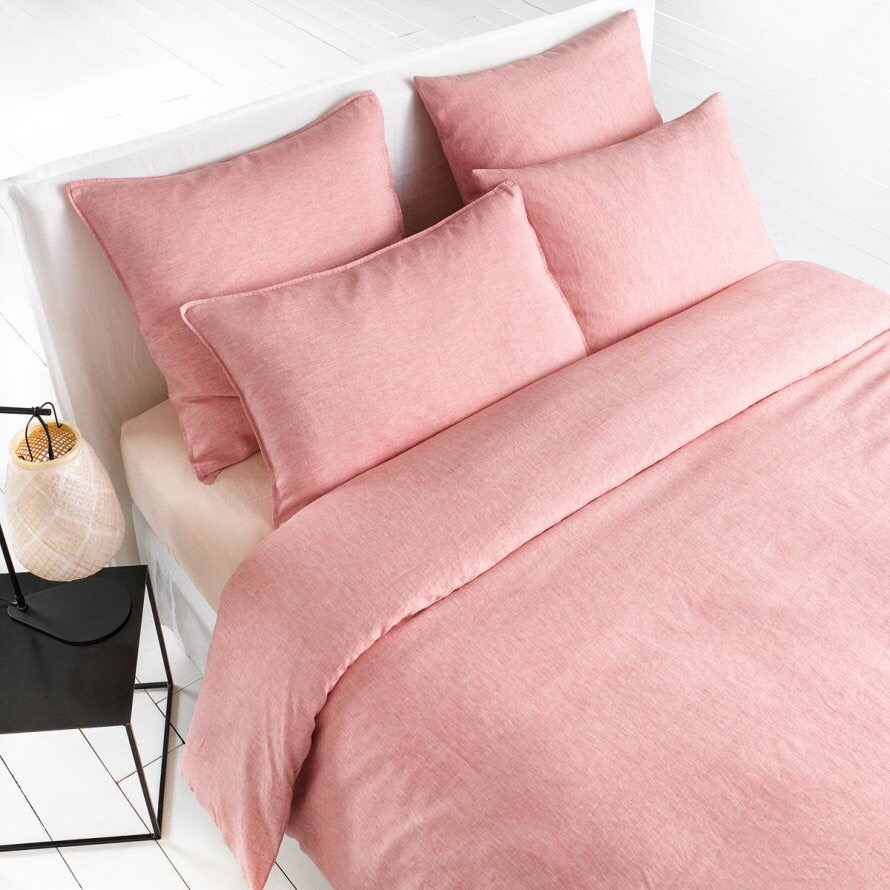 Et pourquoi pas un beau canapé, un pouf ravissant, du linge de lit en lin (Layered, Zara Home). Ou enfin, un mur repeint dans un ton de rose subtil…