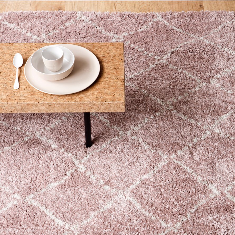 Dans la Deco, depuis longtemps on ne voyait plus le rose que dans les chambres de petites filles…. cette couleur douce et raffinée envahit de nouveau les intérieurs les plus branchés et les plus chics, avec douceur et élégance, dans toutes ses nuances. Profitons de cette tendance pour adoucir nos interieurs, voici en vrac quelques idées à adapter ou à copier ! Sans modération ! Sur les papiers peints des éditeurs en vogue, on trouve du rose pâle, du rose poudré… les nuanciers de peinture rosissent et les papiers peints sont roses à croquer… Les tapis également prennent de la couleur pour adopter cette tendance, chez Layered par exemple, on en trouve de superbes :