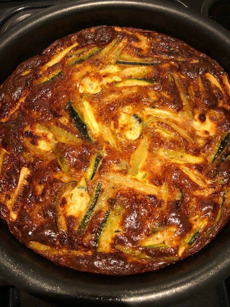 Peler vos courgettes, débitez les en tronçons de 4 ou 5 cm puis en petits bâtonnets. Pressez l’ail dans un peu d’huile d’olive et mettez à chauffer dans un sol ou une grande poêle, puis faire dorer un peu vos bâtonnets de courgettes. Pendant qu’ils cuisent quelques minutes, battez les œufs en omelette dans un grand saladier, ajouter le lait, la crème, le sel et le poivre, puis les cubes de fêta. Ajouter ensuite les courgettes au mélange puis verser dans votre plat préalablement beurré. Cuire à 180 degré durant 40 à 45 mn en fonction de votre four.